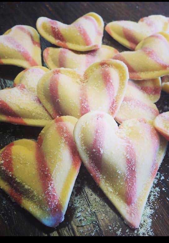 Red & White Striped Cheese Heart Shaped Ravioli